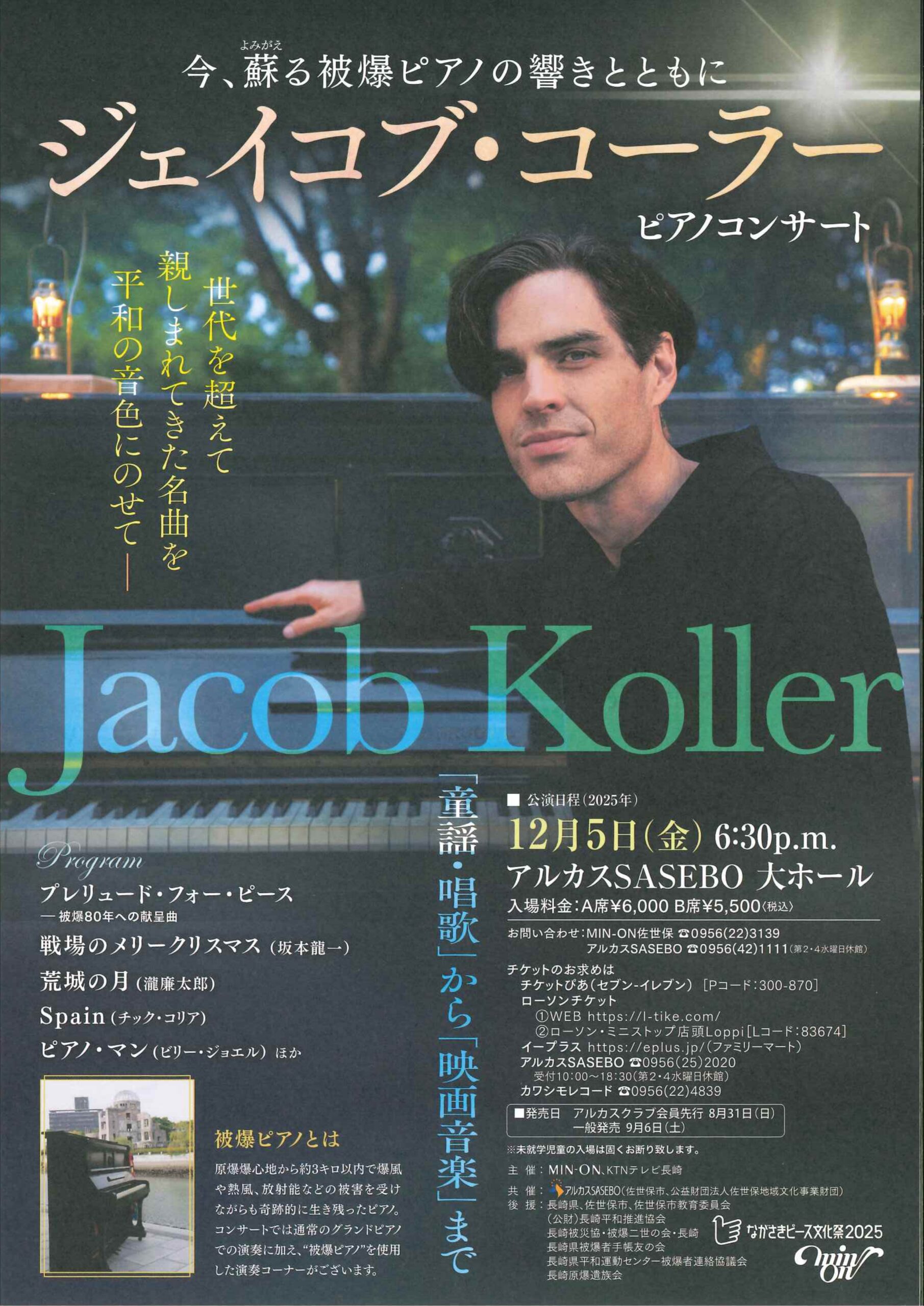 演奏予定曲目:プレリュード・フォー・ピース(被爆80年への献呈曲)、戦場のメリークリスマス、荒城の月、Spain、ピアノ・マン、ほか