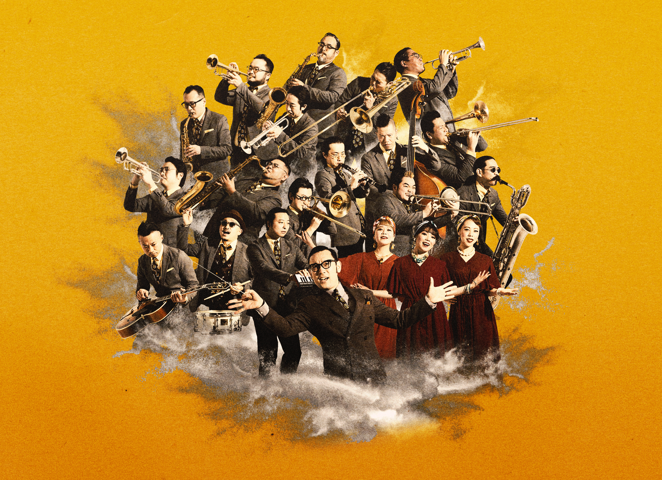 2018年にアルバム『GFJB』でメジャーデビューを果たし、ますます勢いづいたライブ活動を展開。ジャズフェスティバル出演をはじめ、人気コントグループ“東京03”や小松政夫などコメディアンとのコラボ、2019年公開『ダンス・ウィズ・ミー』の楽曲提供や、アマゾンプライムビデオで配信された香取慎吾主演ドラマ『誰かが、見ている』主題歌を担当するなど幅広いメディアに露出しており、今もっとも多忙で話題のビッグバンドといえます。