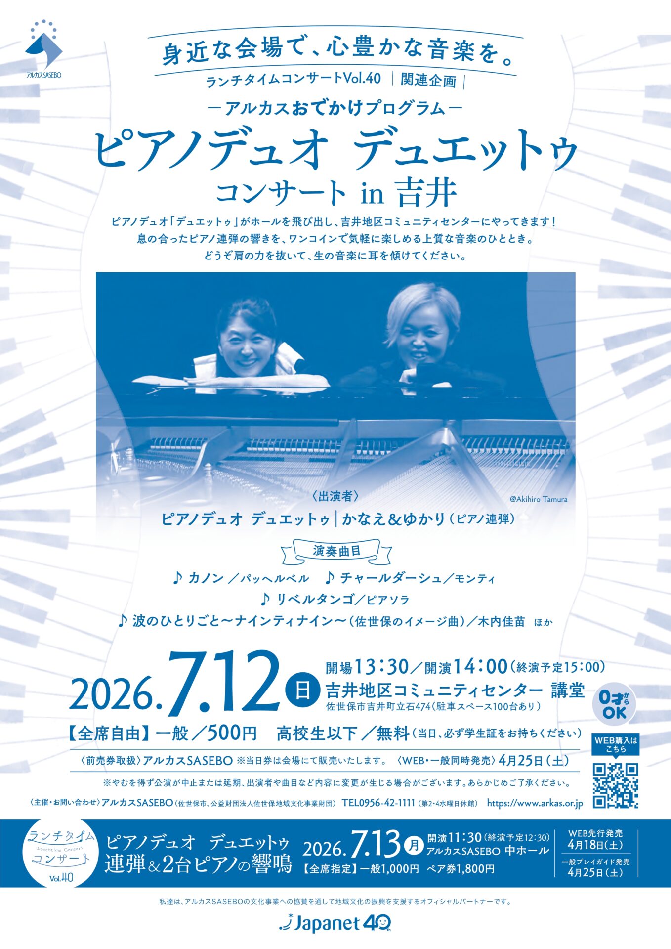 ピアノデュオ「デュエットゥ」がホールを飛び出し、吉井地区コミュニティセンターにやってきます!