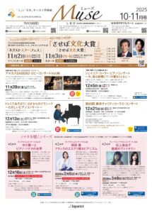 今号では、11月2日(日)・3日(月・祝)の2日間に開催する「第14回させぼ文化マンス アルキャスサセボ『させぼ文化大賞』」をはじめ、3回にかけて開催する「ソナタを聴くシリーズ」3公演の情報などを掲載しております。